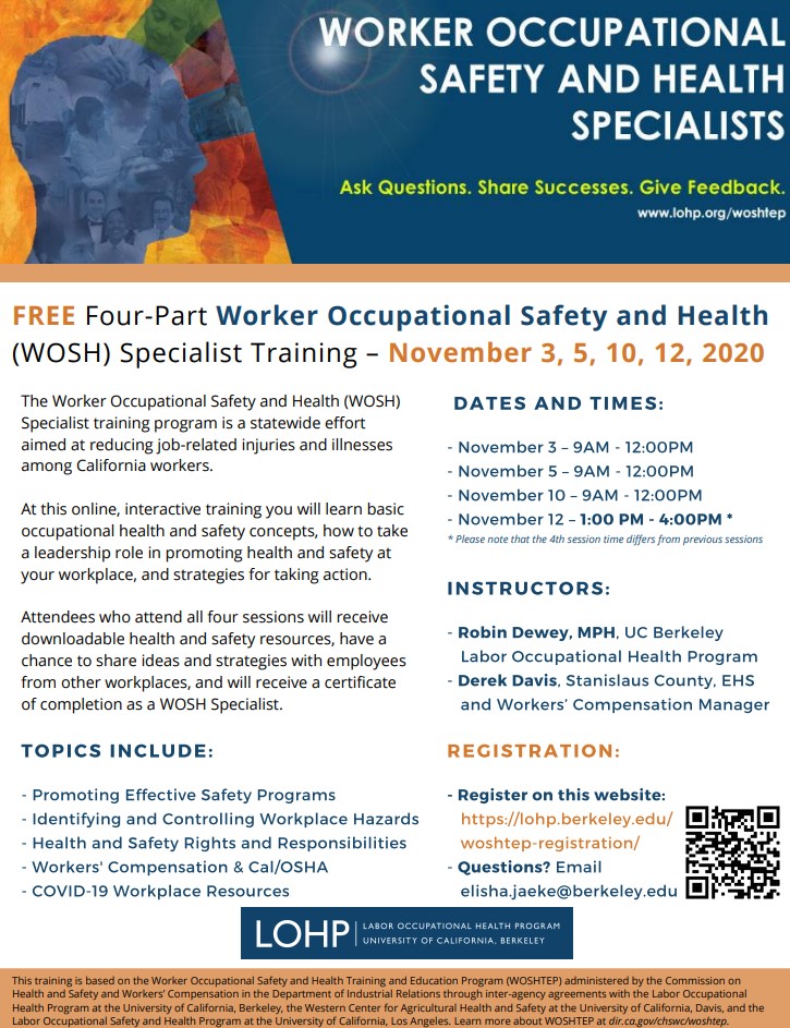 Event Date: November 3, 2020 9:00am to November 12, 2020 4:00amPresenter: Robin Dewey and Derek DavisRegister today and become a WOSH Specialist. Online and interactive. -